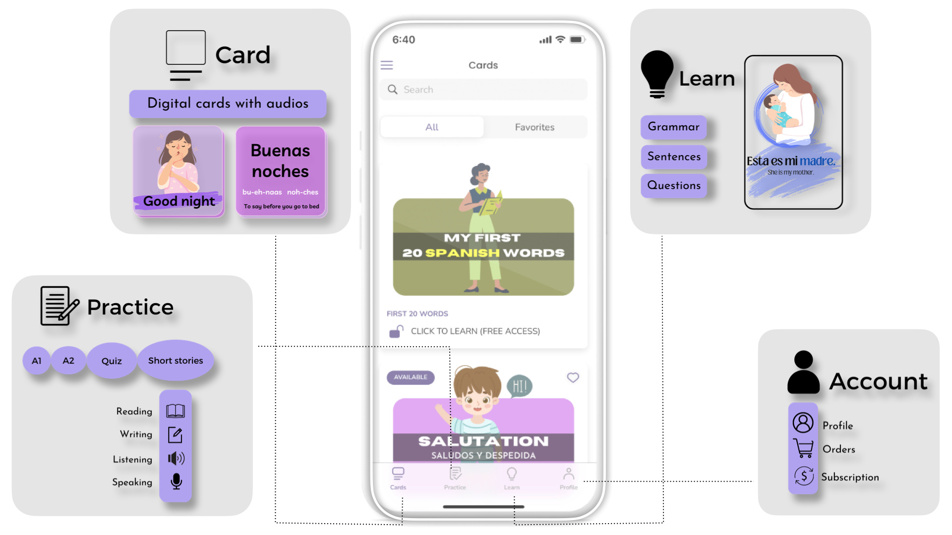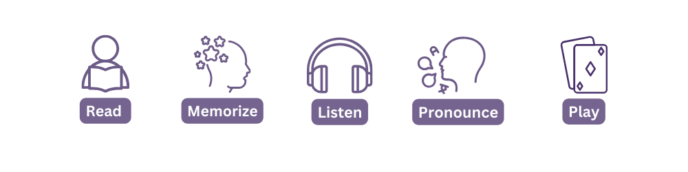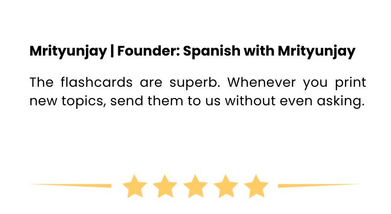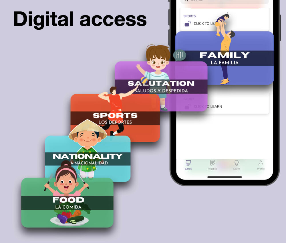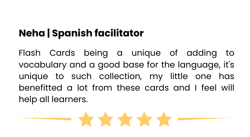 The cards are made in such a way that anyone without any prior knowledge of Spanish can use any topic and get benefited from it. All the basic information about the concepts required is mentioned according to the topic.